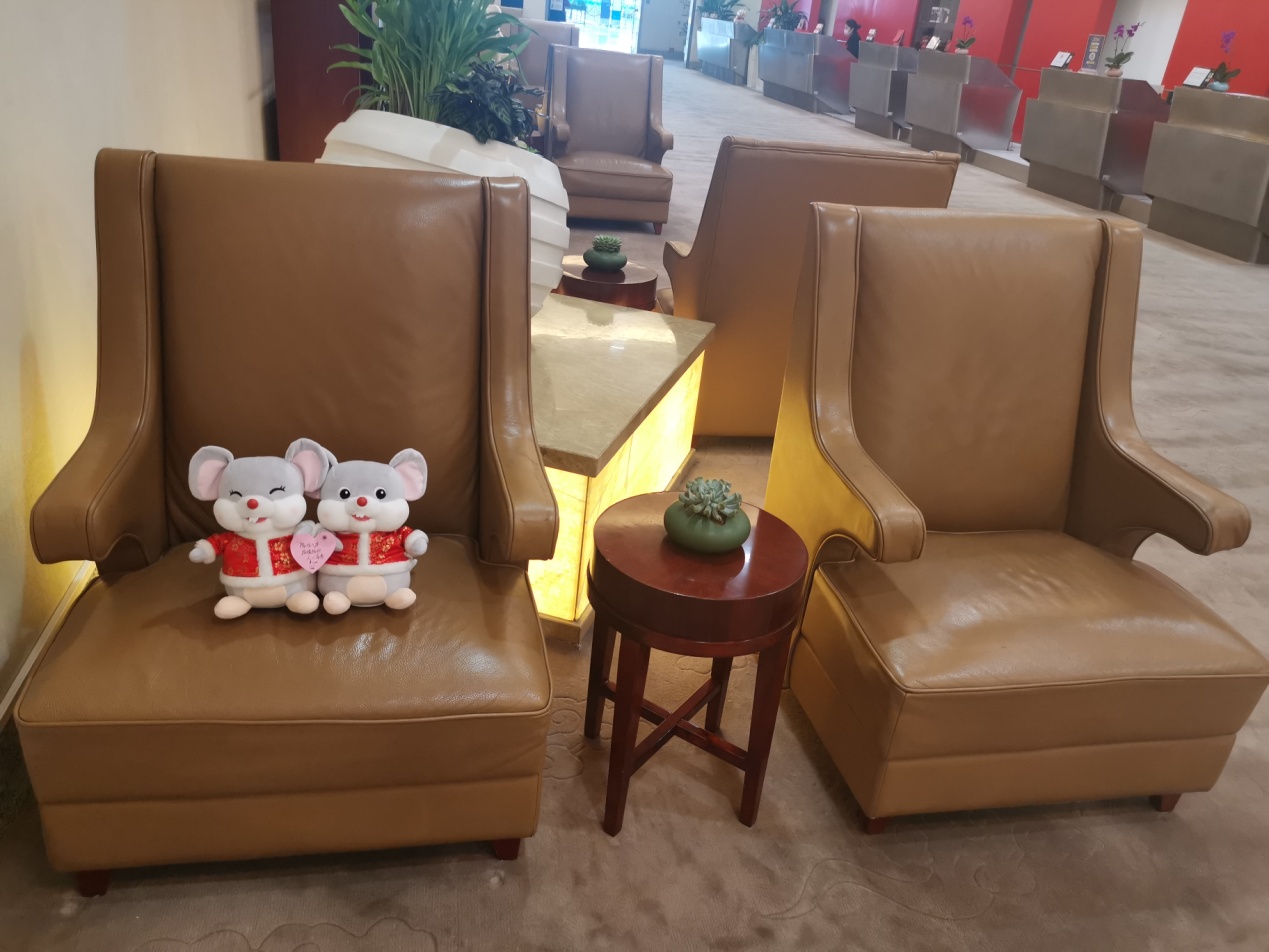 隔位就坐,距离产生美。深航地面服务部贵宾休息区域提供温馨提示牌,间隔对座放置,为旅客提供安全休息空间。