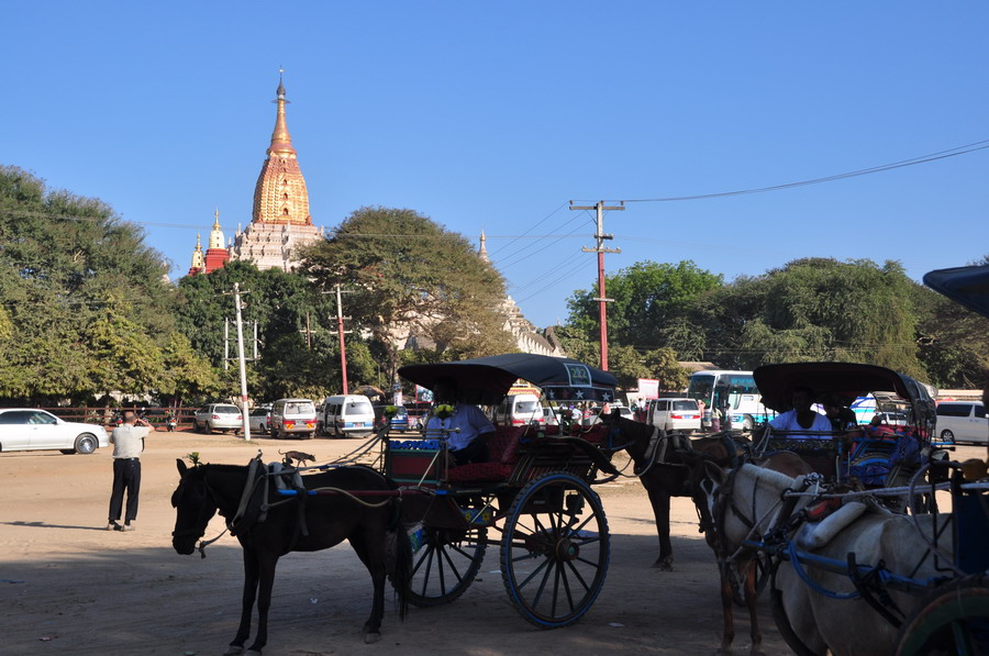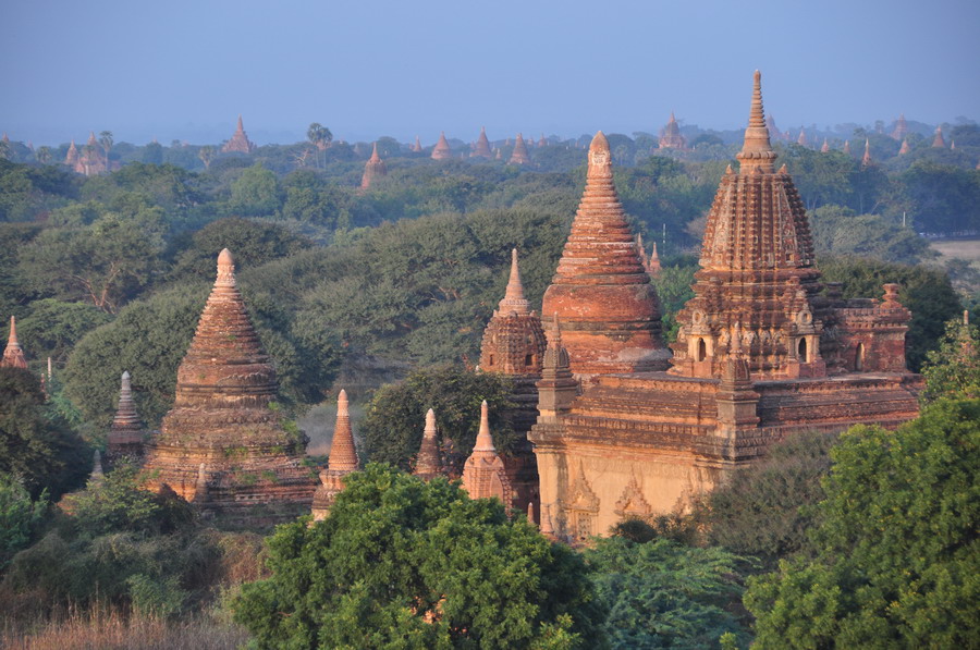 在蒲甘游览,见不到想象中的古城和街道,原来整个塔林散布的40平方公里范围内都是“古城”,城里没有一座超过三层的楼房,映入眼帘的都是星罗棋布的古塔。李仁奇摄