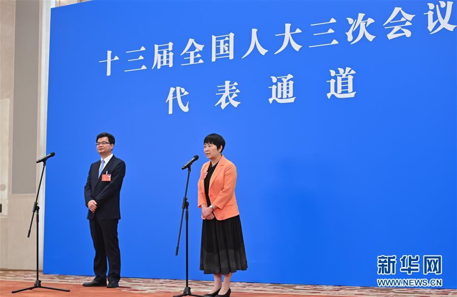 5月22日,第十三届全国人民代表大会第三次会议举行首场“代表通道”采访活动。这是全国人大代表通过网络视频方式接受采访。新华社记者刘金海摄