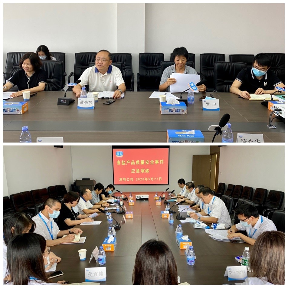 首先,深圳公司负责人对质量体系建设巩固年积极开展巩固体系建设以及质量管理提升等相关工作进行了详细汇报。随后,集团品管中心就食盐质量风险管及应急管理要求和应急演练方案讲解开展培训,并对应急演练全程进行细致指导和点评。应急演练采取模拟场景的方式进行,事故级别为一般食盐产品质量安全事件(IV级)。模拟现场设应急指挥部和综合协调组、事故原因调查组、事故隐患排查组及后勤保障组四个应急处理小组。黄劲东任应急指挥部总指挥,宣布应急演练开始,各小组在应急指挥部的统一指挥下,按照既定职责分工协作有序进行追源溯流、排查、化验、辟谣等工作,妥善完成食盐质量安全事件应急处理。