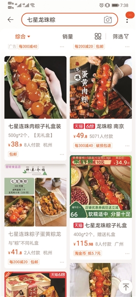 从冰皮的星冰粽到小龙虾月饼,商家在传统节令食物中添加网红噱头已经不稀奇。马上就是端午佳节,扬子晚报记者探访线上、线下粽子市场发现,消费者对猎奇粽子兴致不高,脏脏粽、辣条粽等“非主流”粽子鲜有人问津,反而是传统蛋黄肉粽的升级版——拥有七颗咸蛋黄的“七星龙珠粽”成为真正的网红爆款。