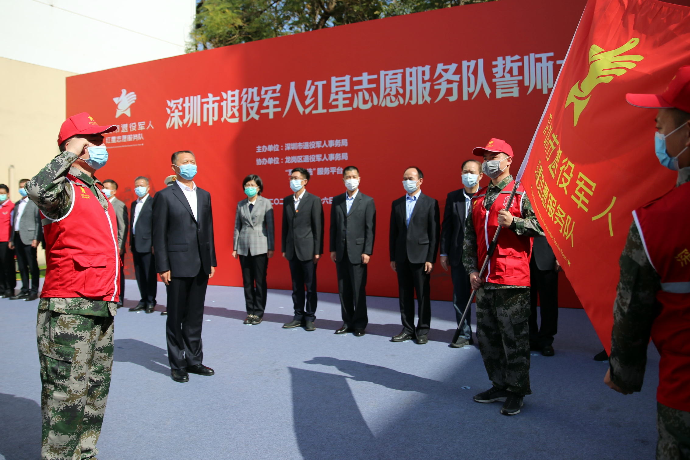 “若有战,召必回!红星照我去战斗!”2020年2月26日上午,深圳市退役军人红星志愿服务队在龙岗区成立,朱贵彩代表退役军人接过旗帜,现场庄严承诺为深圳应急事务出力。“不仅是一面旗帜,更是一个使命,我们要把退役军人的光辉形象展示在群众面前,为社会、为群众做更多力所能及的事情。”