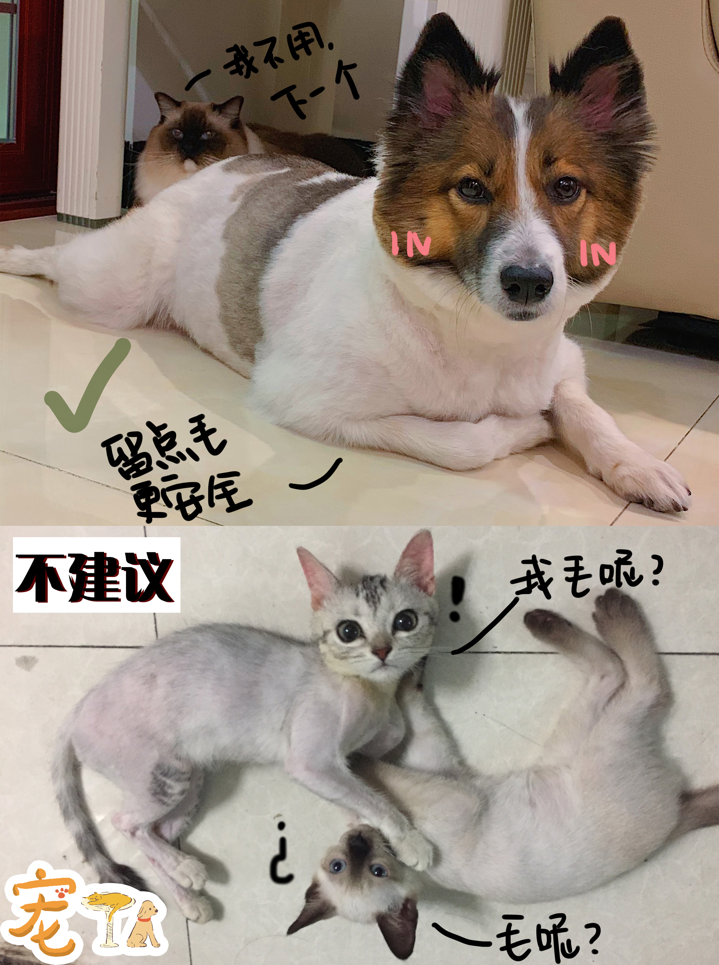 许多家长可能会觉得,既然“毛孩子”们是因为毛发厚重的原因才会中暑,那只要帮TA们把毛剃了不就凉快了吗?就像人在天气热的时候会剪短头发一样。其实并不是这样,毛发对于“毛孩子”来说,还有着更为重要的作用。