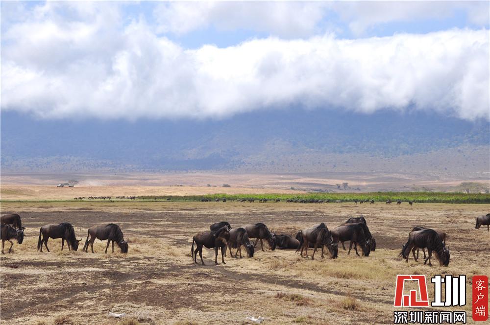 火山口周围风光绮丽,栖居着各种野生动物,主要有野牛、角马、斑马、大羚羊、鬣狗、大象、河马等,总数达3万余头。李仁奇摄