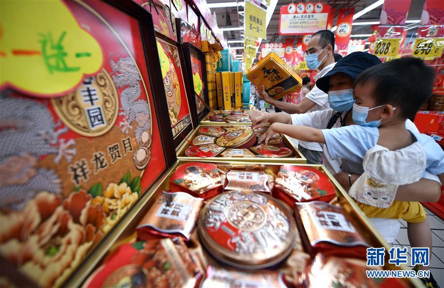 9月26日,市民在海口市的一家超市选购月饼。中秋节临近,海南省海口市各超市纷纷设立月饼选购专区,集中摆放品种繁多的月饼,方便市民选购。新华社记者 郭程 摄