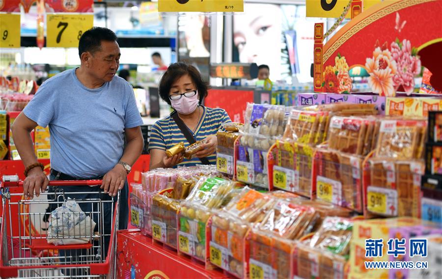 9月26日,市民在海口市的一家超市选购月饼。中秋节临近,海南省海口市各超市纷纷设立月饼选购专区,集中摆放品种繁多的月饼,方便市民选购。
