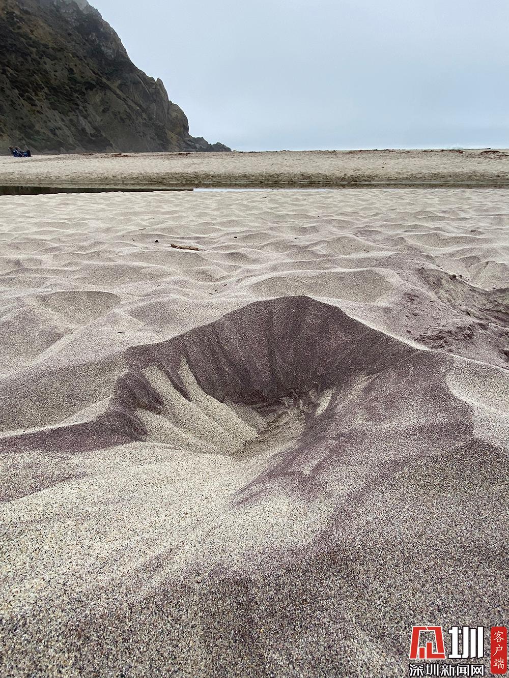 深浅不一的紫色在沙滩上吸引着无数游客前来挑战,也透露着造化神奇。郑磊 摄。