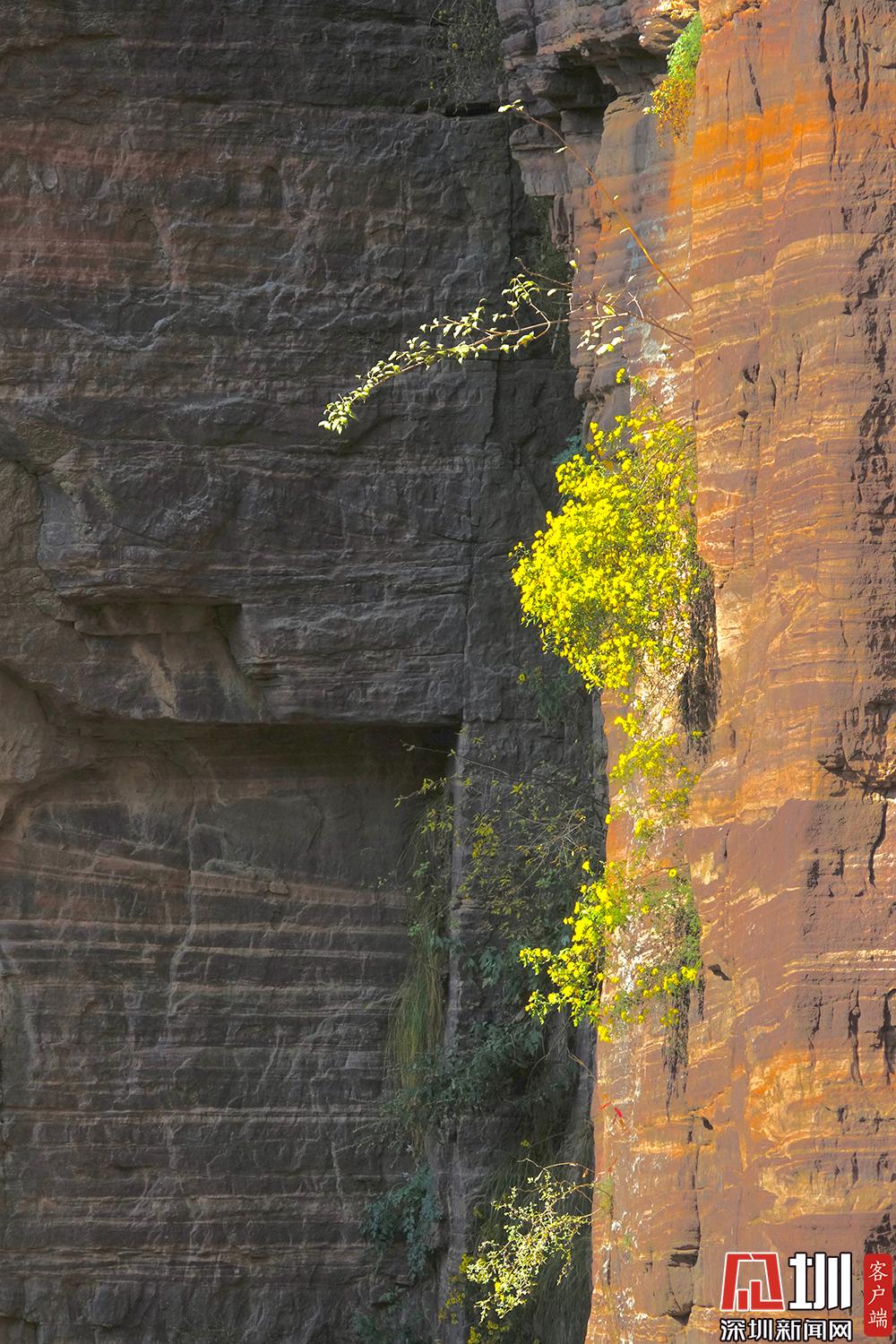 嫩绿的树枝从绝壁之中生长开来。李仁奇摄
