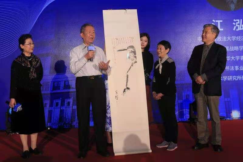 活动现场,关牧村老师和爱人江泓博士向专程赶来参加活动的中南大深圳校友会荣誉会长、中南大原副校长王寿安教授赠送书画。