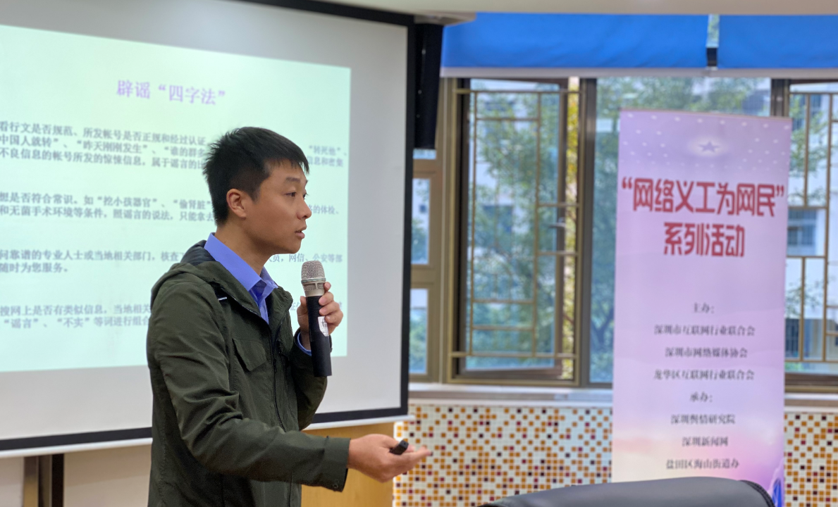 “网络义工为网民”系列活动由深圳市互联网行业联合会、深圳市网络媒体协会、龙华区互联网行业联合会、盐田区网信中心联合主办,深圳舆情研究院、深圳新闻网、盐田区海山街道办、龙华区民治街道办承办。活动通过走进社区,帮助社区居民了解网络使用常识、识别网络谣言、防止网络诈骗,以达到逐步提升深圳网民综合网络素养的目的。