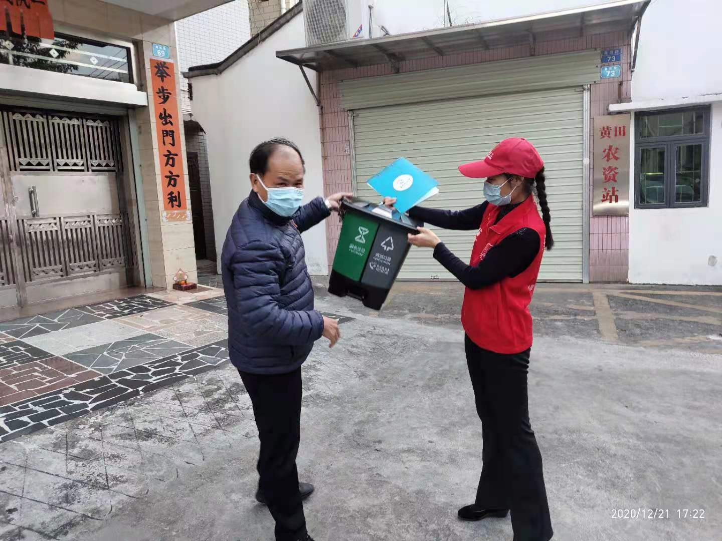 随后,黄田社区将持续开展 《条例 》入户宣传活动,为居民派发分类指引、《致居民的一封信》及二合一(厨余垃圾、其他垃圾)家庭分类桶;通过一对一上门入户的形式向居民详细介绍垃圾分类知识、分类投放要求及《条例》相关法律责任,鼓励并督促居民做好垃圾分类,培养“两桶一袋”居家分类的良好习惯,共同践行垃圾分类生活新时尚,共创文明城市。