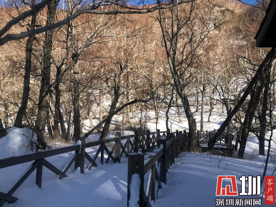 树木、小木桥、白雪组成美丽的画面,吸引各地游客来打卡。