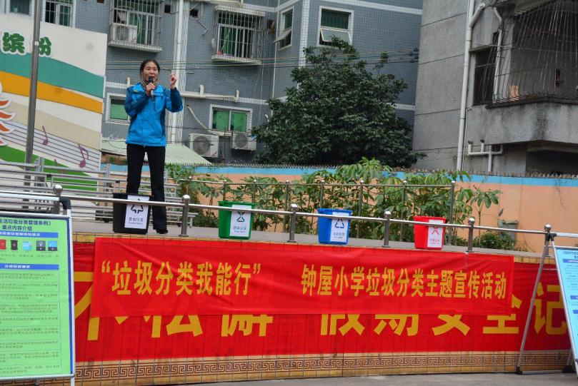 为加强生态环保意识培养和垃圾分类知识教育,推动校园生态文化建设,激发师生热爱生活、积极向上的道德情感和提高师生自觉保护环境,通过学习和参加实践活动从不懂垃圾分类到认识垃圾分类,从认识垃圾分类到愿意做垃圾分类,从而持续地做好垃圾分类到养成垃圾分类的习惯 ,1月8日,深圳市宝安区钟屋小学联合绿宝宝垃圾分类指导中心举办垃圾分类进校主题宣传活动,进一步在校内营造浓厚的环保绿色的良好道德风尚,共创干净整洁的校园环境卫生 ,现场气氛热烈,在校全体师生、家长义工等共计1600余人参与活动 。