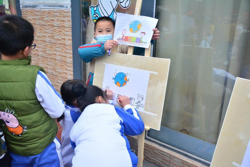 活动现场还设置了画架及画板,学生及老师可以以环保为主题,自由发挥,运用色彩在画纸上展现自己对环保的设想与憧憬。