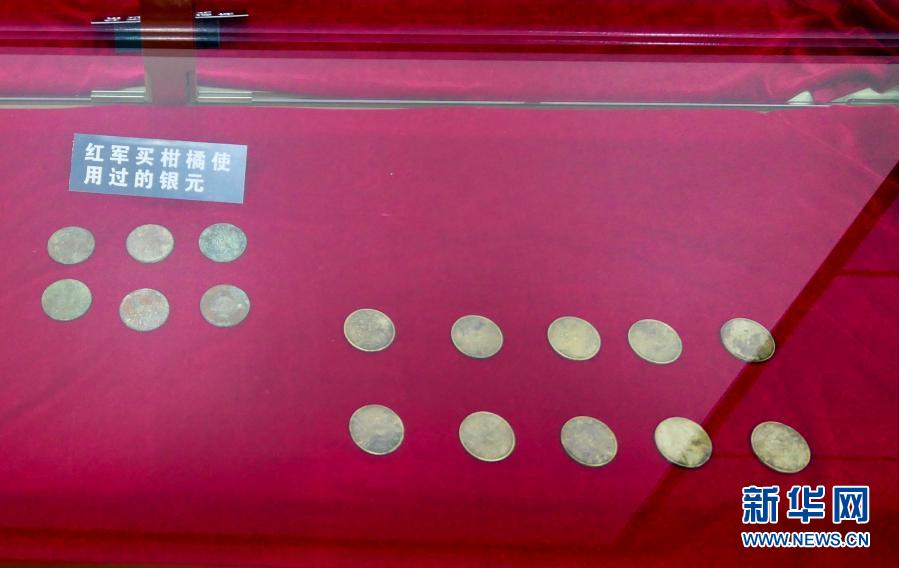 这是1月27日在湖南省张家界湘鄂川黔革命根据地纪念馆拍摄的银元,右下角的十枚是当年红军以高于市价支付给菜农的十块银元。新华社记者苏晓洲摄