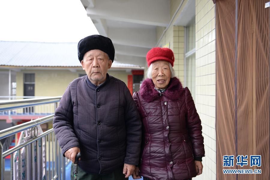 这是1月27日在湖南省张家界市永定区大溶溪光荣院拍摄的侯宗元(左)和老伴田益姑。新华社记者陈振海摄