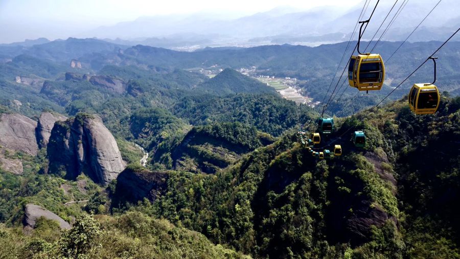 乘索道或步行登上八角寨观景台可以俯瞰崀山丹霞的全貌。李仁奇 摄