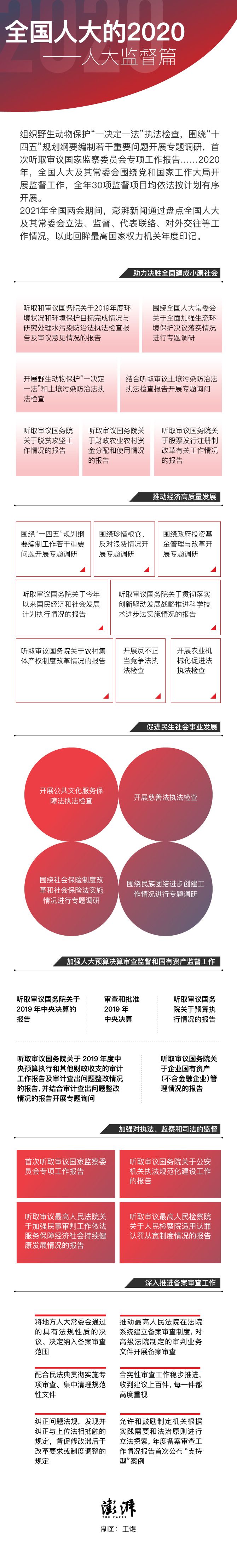 2021年全国两会期间,澎湃新闻通过盘点全国人大及其常委会立法、监督、代表联络、对外交往等工作情况,以此回眸最高国家权力机关年度印记。