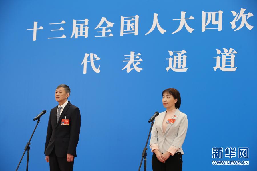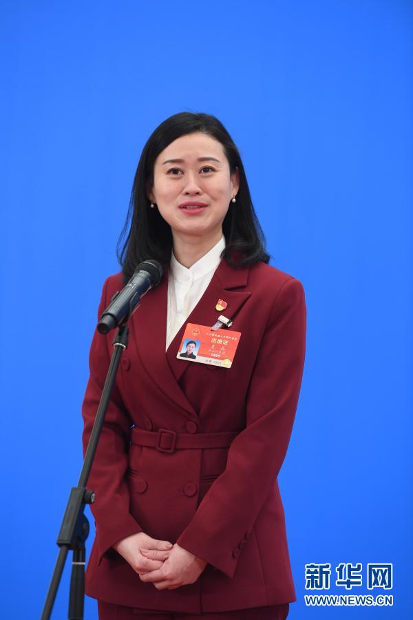 3月5日,第十三届全国人民代表大会第四次会议举行首场“代表通道”采访活动。这是全国人大代表袁晶通过网络视频方式接受采访。新华社记者 金良快 摄