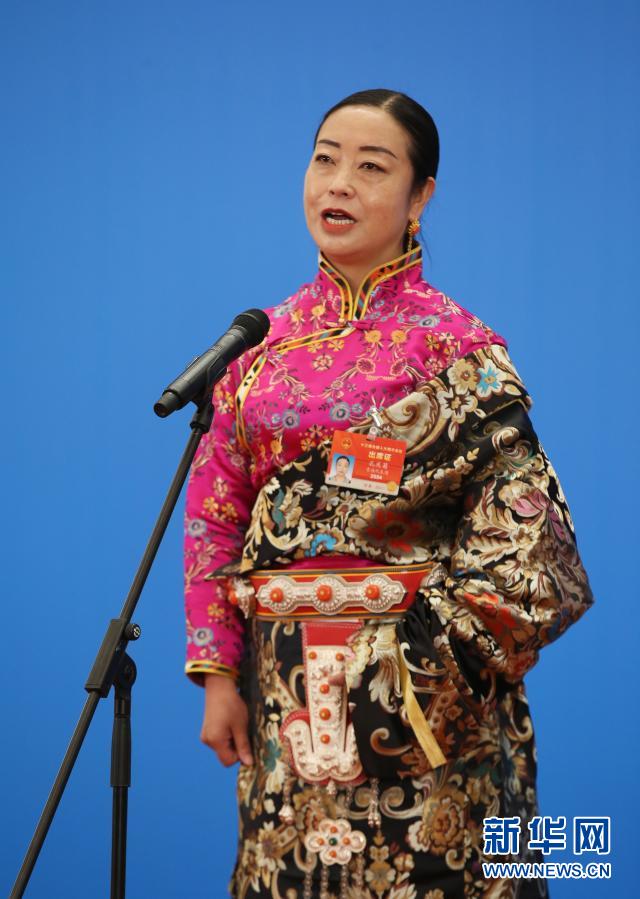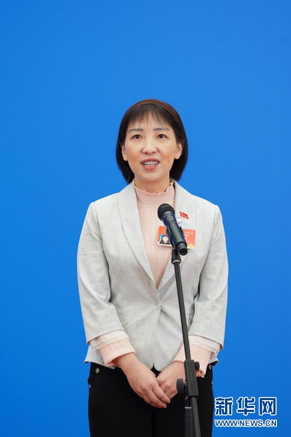 3月5日,第十三届全国人民代表大会第四次会议举行首场“代表通道”采访活动。这是全国人大代表郭艳玲通过网络视频方式接受采访。新华社记者 金良快 摄