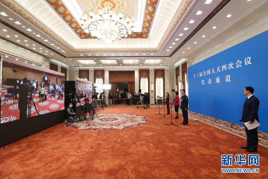 3月5日,第十三届全国人民代表大会第四次会议举行首场“代表通道”采访活动。这是全国人大代表通过网络视频方式接受采访。新华社记者 金立旺 摄