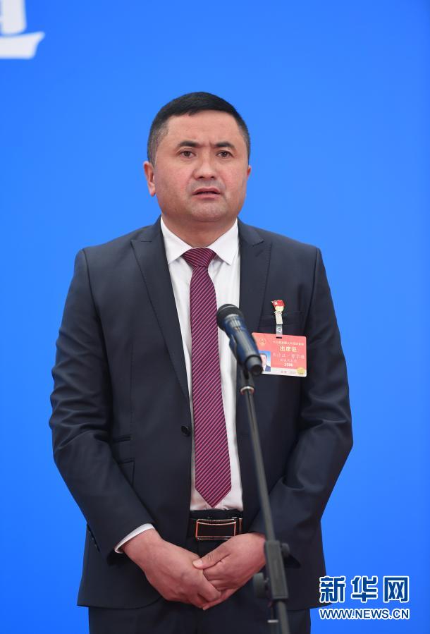 3月5日,第十三届全国人民代表大会第四次会议举行首场“代表通道”采访活动。这是全国人大代表木沙江·努尔墩通过网络视频方式接受采访。新华社记者 金良快 摄