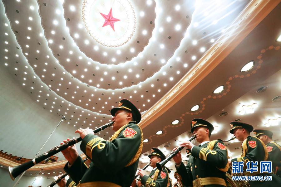 3月5日,第十三届全国人民代表大会第四次会议在北京人民大会堂开幕。这是军乐团在演奏。新华社记者 金良快 摄
