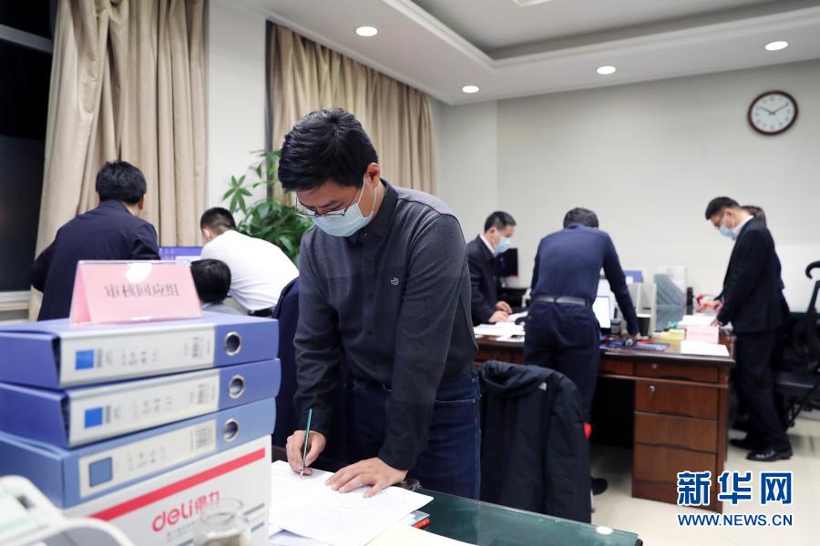 3月5日,2021年全国两会代表委员意见建议梳理汇总和转办回应工作专班的工作人员在忙碌。新华社记者李木子摄