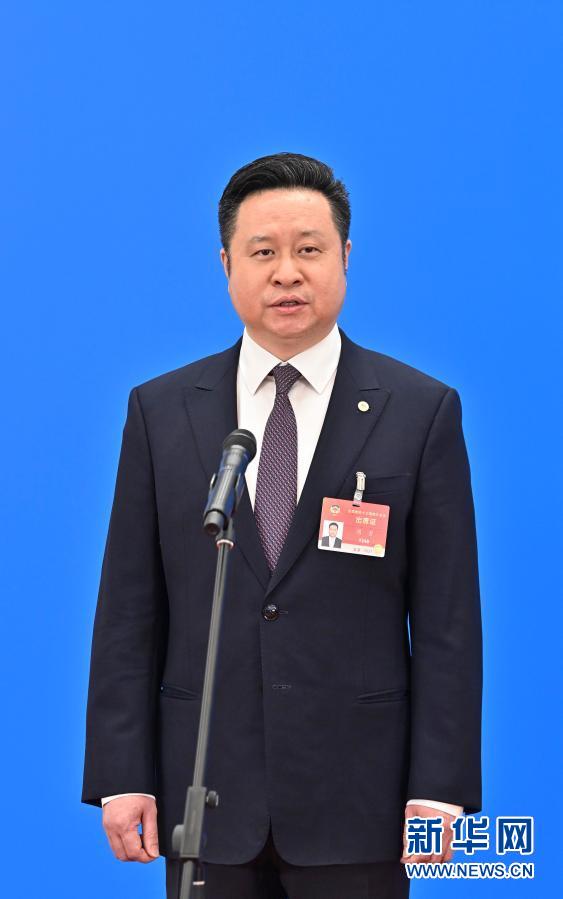 3月7日,全国政协十三届四次会议第二场“委员通道”采访活动在北京人民大会堂新闻发布厅举行。这是全国政协委员周勇通过网络视频方式接受媒体采访。新华社记者李鑫摄