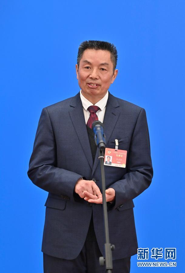 3月7日,全国政协十三届四次会议第二场“委员通道”采访活动在北京人民大会堂新闻发布厅举行。这是全国政协委员许启金通过网络视频方式接受媒体采访。新华社记者李鑫摄