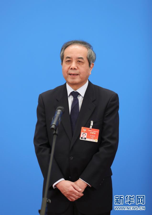 3月7日,全国政协十三届四次会议第二场“委员通道”采访活动在北京人民大会堂新闻发布厅举行。这是全国政协委员吴德刚通过网络视频方式接受媒体采访。新华社记者李木子摄