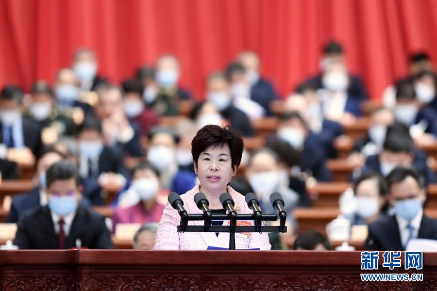 3月7日,全国政协十三届四次会议在北京人民大会堂举行第二次全体会议。这是韦震玲委员作大会发言。新华社记者丁海涛摄