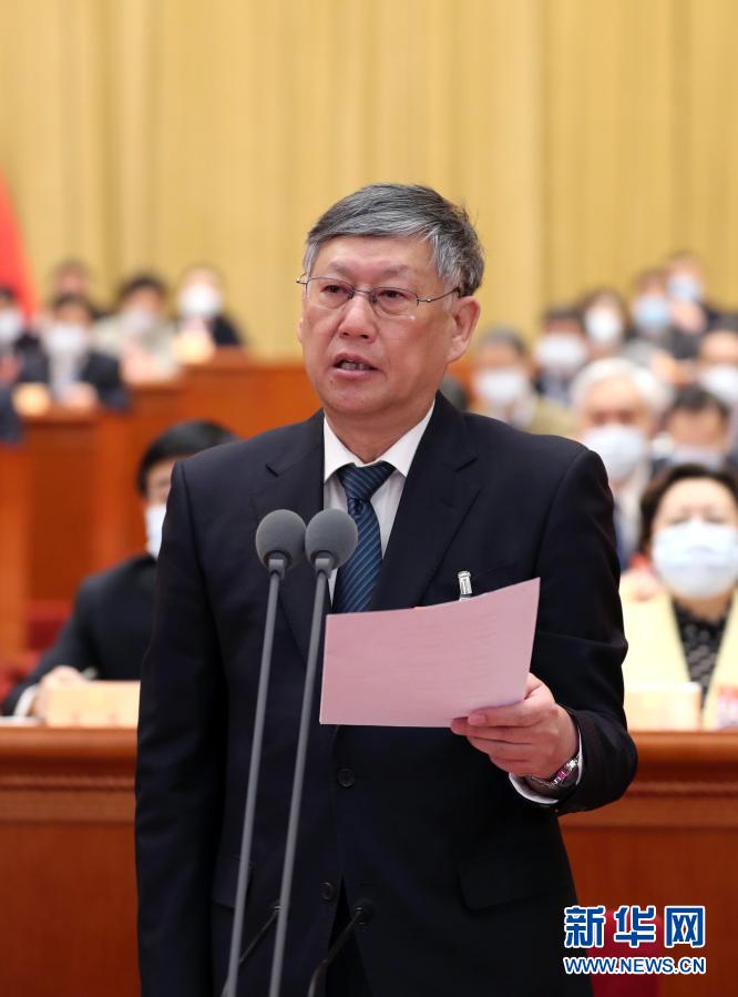 3月7日,全国政协十三届四次会议在北京人民大会堂举行第二次全体会议。这是吴国华委员代表台盟中央作大会发言。新华社记者丁海涛摄