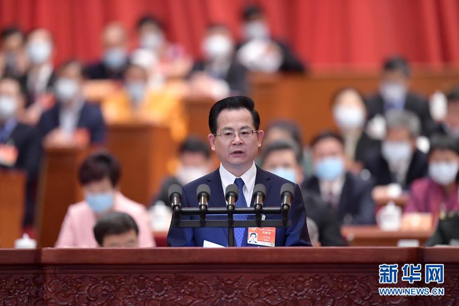 3月7日,全国政协十三届四次会议在北京人民大会堂举行第二次全体会议。这是刘家强委员代表民革中央作大会发言。新华社记者李贺摄