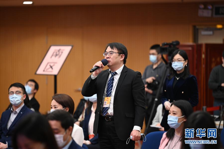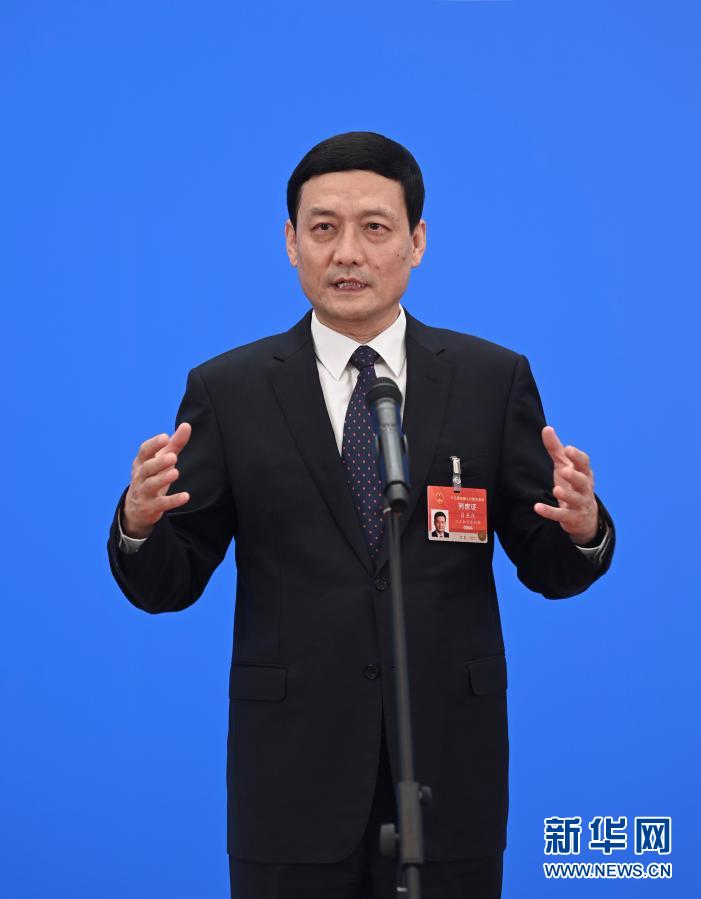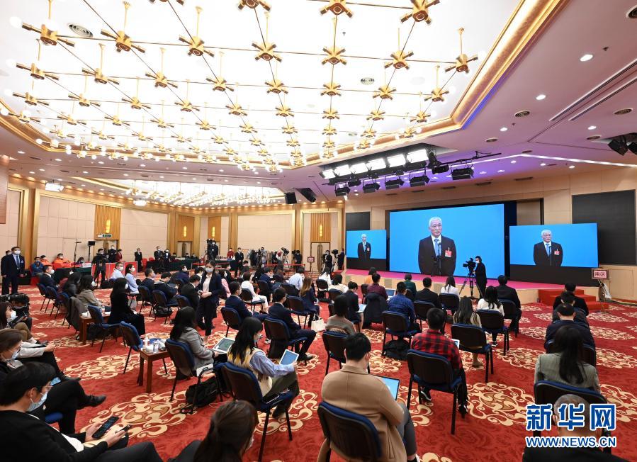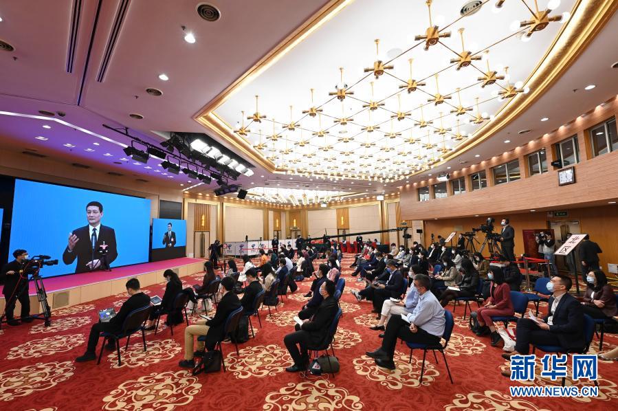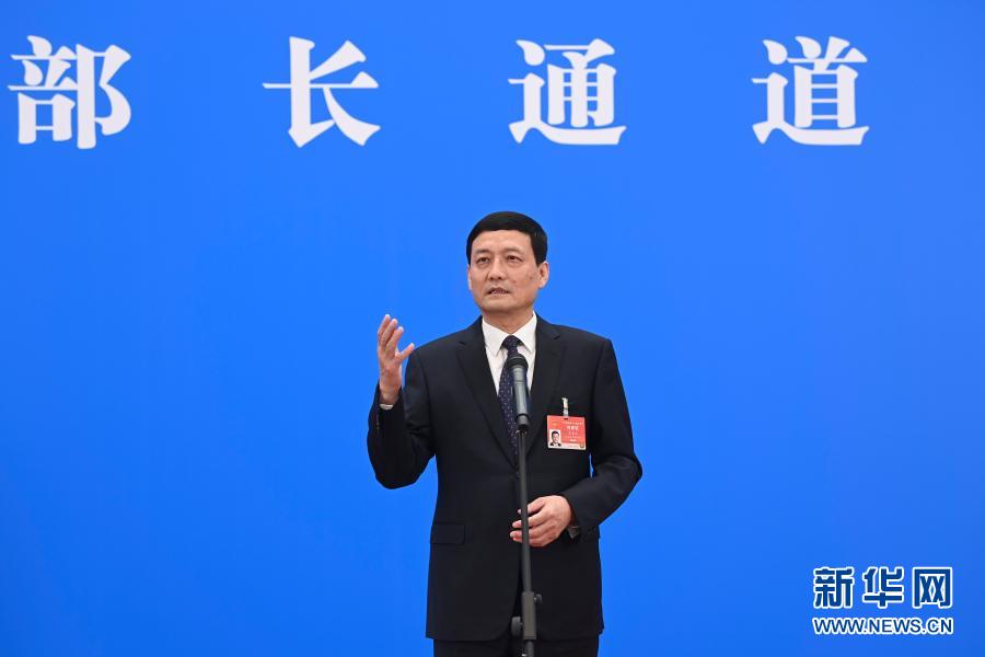 3月8日,第十三届全国人民代表大会第四次会议举行第二场“部长通道”采访活动。这是记者在分会场通过网络视频方式采访工业和信息化部部长肖亚庆。