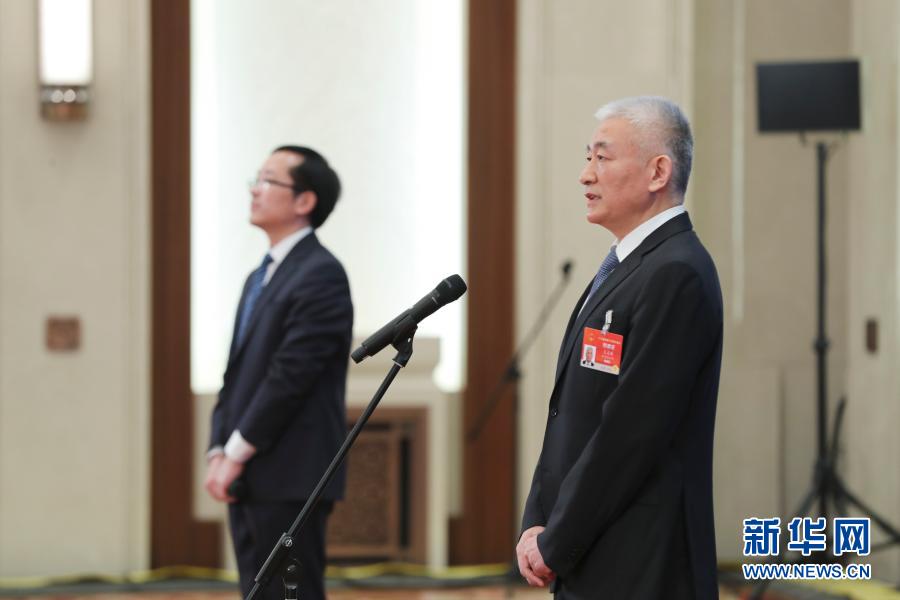 3月8日,第十三届全国人民代表大会第四次会议举行第二场“部长通道”采访活动。这是记者在分会场通过网络视频方式采访科学技术部部长王志刚。