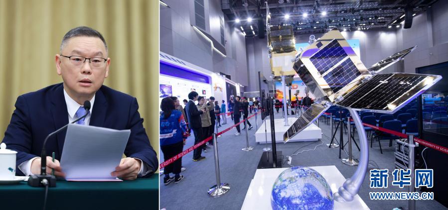 右图:2019年12月15日,庆祝澳门回归祖国20周年航天科普展在澳门科技大学开幕。开幕式上,澳门首颗科学与技术试验卫星定名“澳科一号卫星”。新华社记者张金加摄