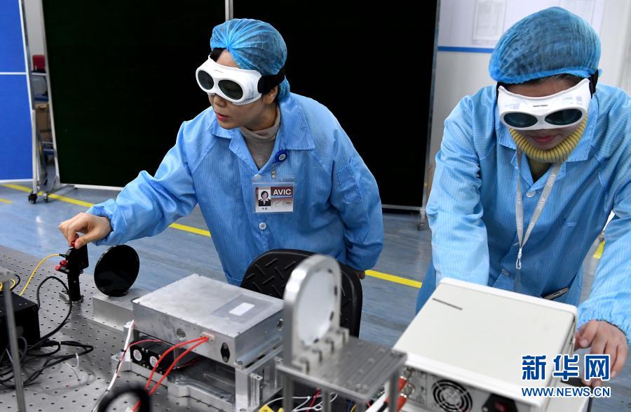 2月25日,在中国航空工业集团公司洛阳电光设备研究所,航空工业集团光电专业特级技术专家羊毅(左)与团队成员在实验室做实验。新华社记者李安摄
