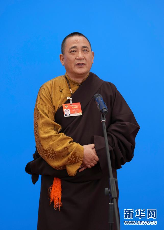 3月10日,全国政协十三届四次会议第三场“委员通道”采访活动在北京人民大会堂新闻发布厅举行。这是全国政协委员洛桑山丹通过网络视频方式接受媒体采访。