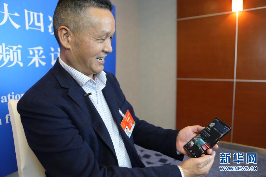 3月3日,全国人大代表、福建永泰县希安油茶专业合作社负责人卢玉胜在驻地接受采访时展示他为宣传油茶开通的社交媒体账号。新华社记者吴雨摄