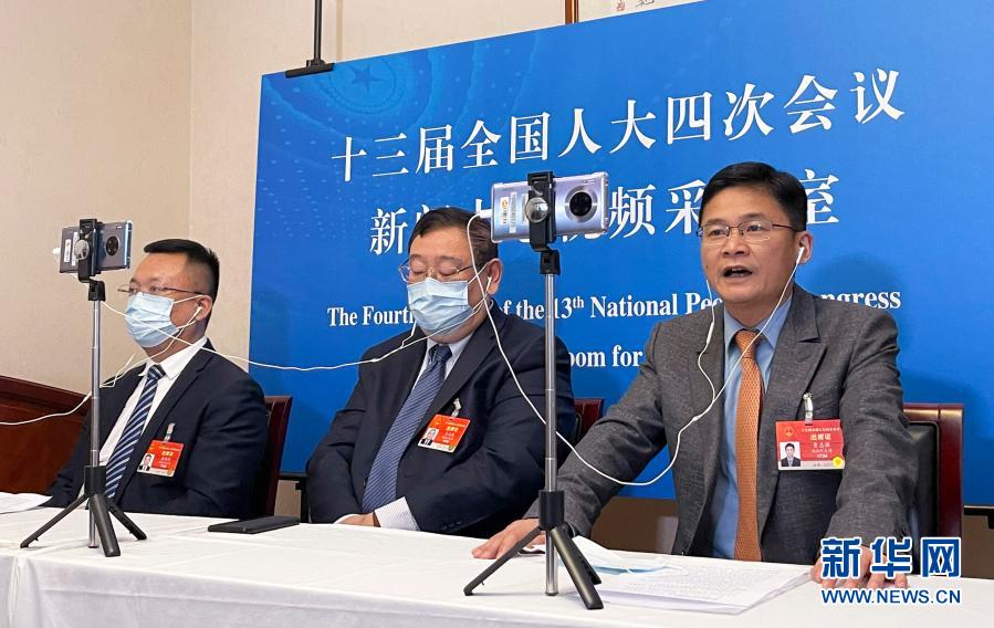 3月6日,全国人大代表在湖南代表团驻地接受视频采访。新华社记者熊争艳摄