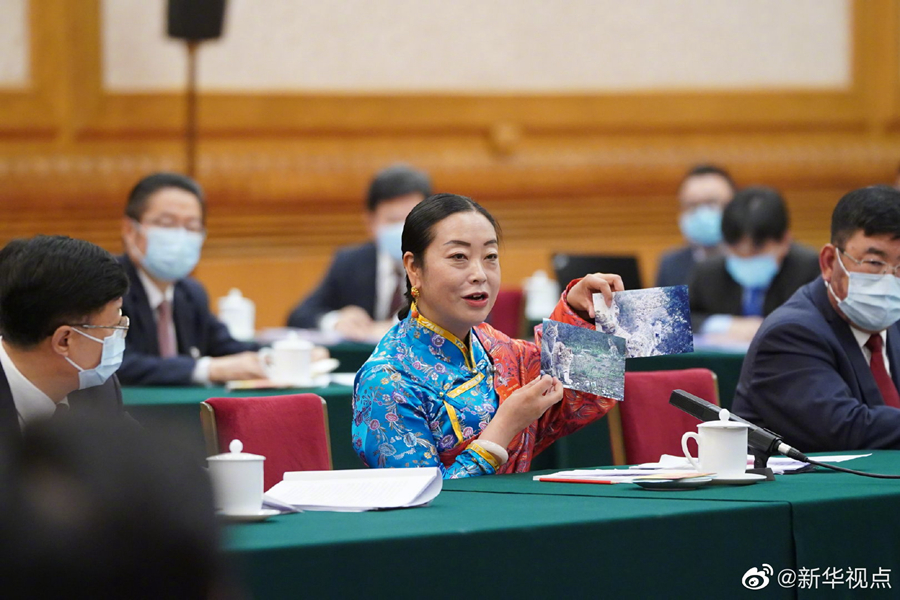 新华社“新华视点”微博2021年3月11日讯 “总书记,您看,这是最近在我们家乡拍的。”3月7日下午,人民大会堂东大厅,青海代表团审议现场,两张照片吸引了习近平总书记的目光。孔庆菊代表拿出照片,请坐在对面的习近平总书记观看。一张照片中,是漫步在草丛中的荒漠猫;另一张,则是行走在树丛中的雪豹。“以前很少见的珍稀物种,现在频频现身了。”孔庆菊以此佐证,讲述生态环境的变迁。“这说明生态保护见效了。”习近平总书记凝视照片,频频点头,“特别是大家的生态保护意识也增强了,看到了生态本身的经济价值。”(摘自《共商国是纪实》文字记者:张晓松、朱基钗 摄影记者:李学仁、黄敬文、李涛)