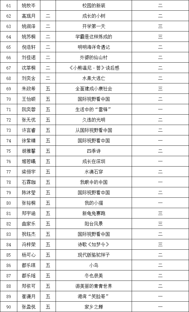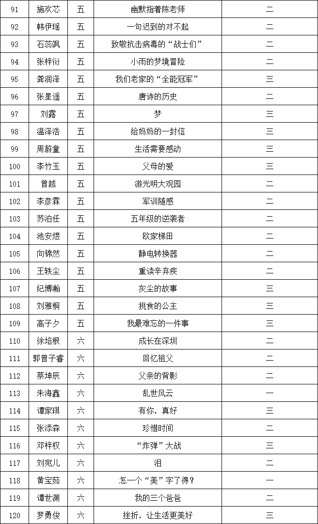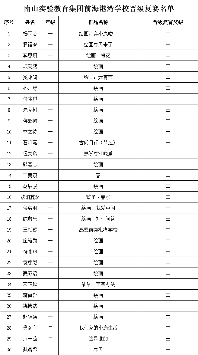 自2021年1月,活动征稿启动以来,获得了深圳市广大中小学生、教师、文学爱好者的热烈响应积极参与,吸引了深圳百余所学校的上万人关注报名。现公布南山实验教育集团前海港湾学校校园专场晋级复赛名单如下: