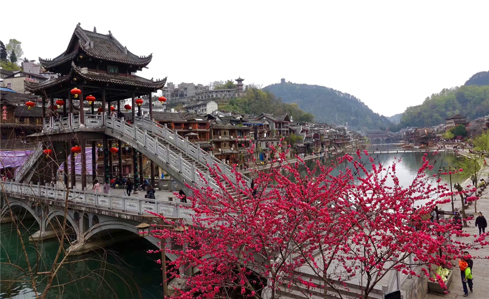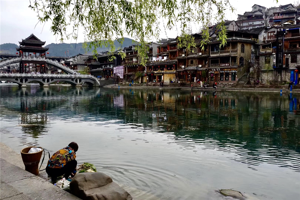 山水环绕的凤凰古城景色优美,古风盎然。李仁奇 摄