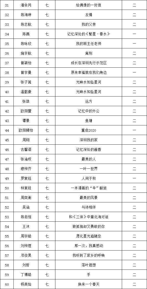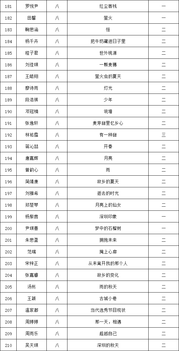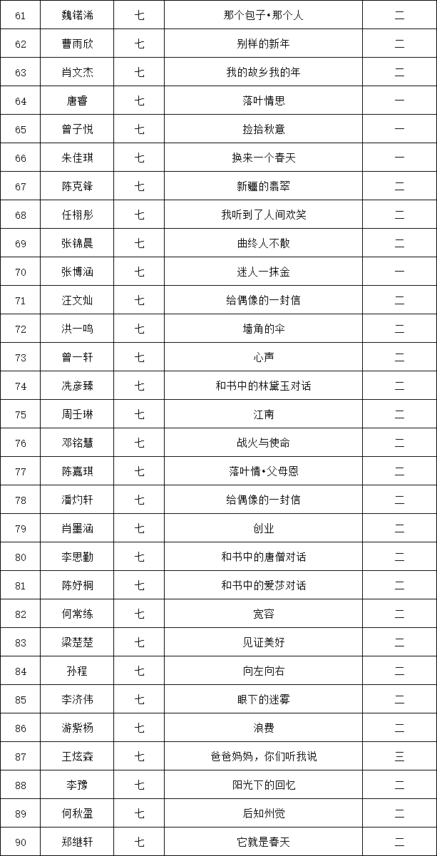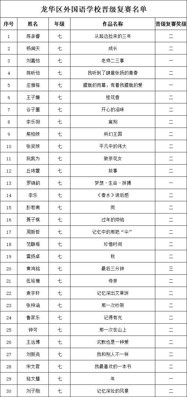 自2021年1月,活动征稿启动以来,获得了深圳市广大中小学生、教师、文学爱好者的热烈响应积极参与,吸引了深圳百余所学校的上万人关注报名。现公布龙华区外国语学校专场晋级复赛名单如下: