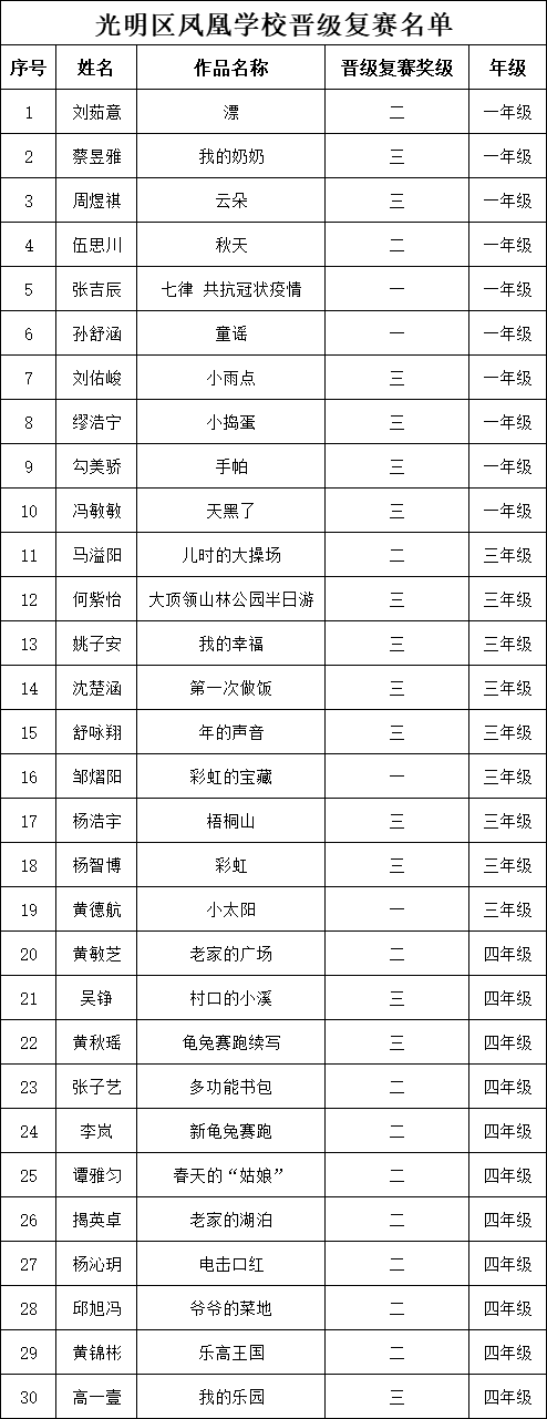 自2021年1月,活动征稿启动以来,获得了深圳市广大中小学生、教师、文学爱好者的热烈响应积极参与,吸引了深圳百余所学校的上万人关注报名。现公布深圳市光明区凤凰学校专场晋级复赛名单如下: