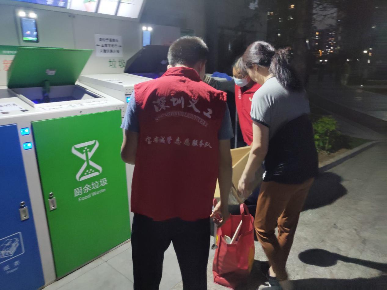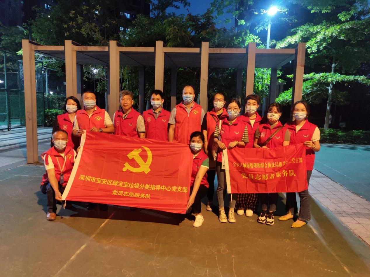 深圳新闻网讯 为了贯彻落实《宝安区“以红色力量引领绿色生活推动垃圾分类工作实施方案》,充分发挥基层党组织和党员在推进全民垃圾分类工作中的示范引领作用,带头践行垃圾分类新时尚,构建起“党委抓支部、支部管党员、党员带群众”的红色联动网络,13日晚上,宝安区城市管理和综合执法局机关第二党支部党员志愿者服务队,联合绿宝宝党支部,参加了假日名居垃圾分类志愿督导活动。