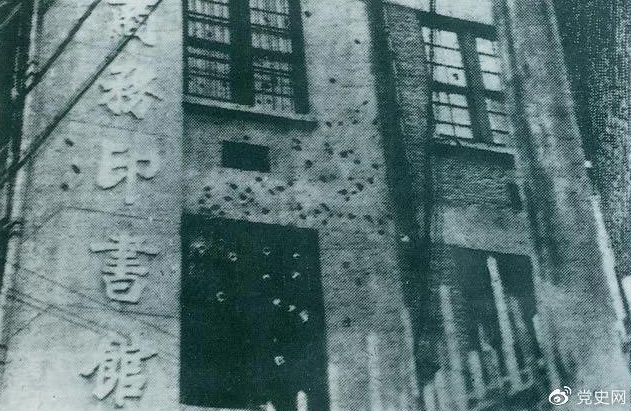 1927年4月12日,蒋介石在上海发动反革命政变,上海工人纠察队总指挥部所在地商务印书馆遭到袭击,大楼上弹痕斑斑。