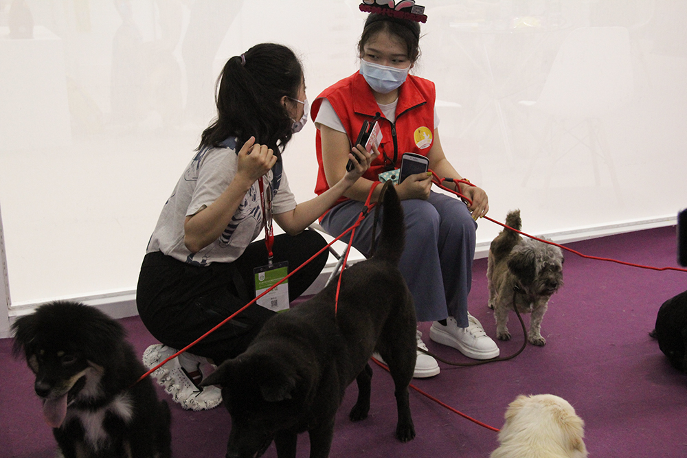 逛展的观众带来的幼年宠物犬。
