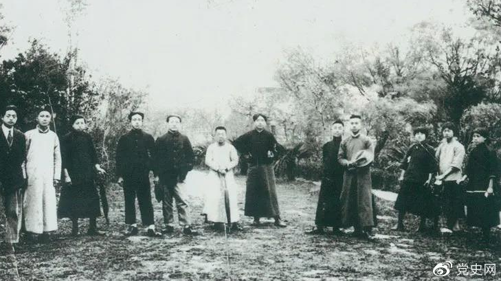 1920年5月8日,新民学会部分会员在上海半淞园合影。左七为毛泽东。